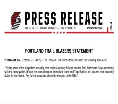 北京时间10月24日,波特兰开拓者队发布官方声明:“我们已知晓涉及主教练昌西-比卢普斯的指控,开拓者队正全力配合调查。比卢普斯已被立即停职,蒂亚戈-斯普利特将暂时接任主教练职务。”此前,比卢普斯因涉及参与非法扑克游戏被捕,还被指控洗钱、电信欺诈共谋等多项罪名。
