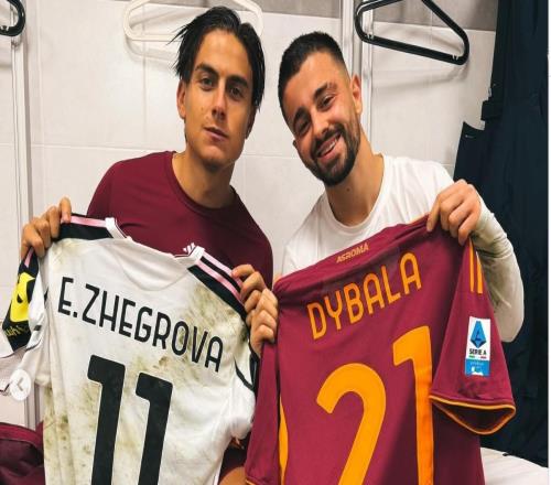 在尤文对阵罗马的比赛结束后,热格罗瓦与迪巴拉交换了球衣 -