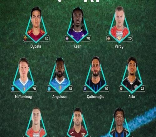 意甲第8轮最佳阵容:恰20、麦克托米奈、迪巴拉、瓦尔迪入选 -