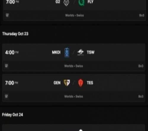 体育资讯10月20日称 S15瑞士轮第四轮抽签结束,第四轮BLG交手VKS,TES对阵GEN,T...
